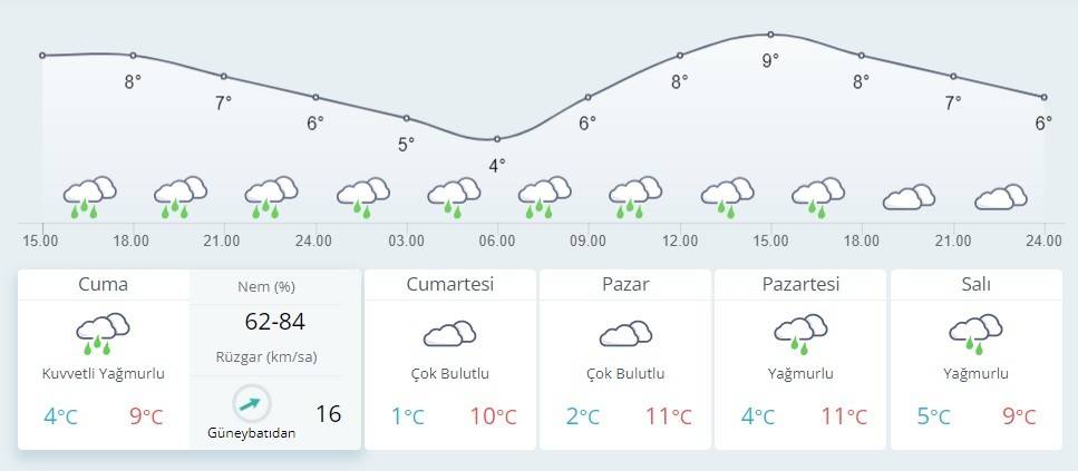 Meteoroloji Genel Müdürlüğü Analiz ve Tahmin Merkezinden yapılan açıklamaya göre, bu akşamdan itibaren Rize ve Artvin'in kıyı kesimlerinde kuvvetli yağmur (21-50 kilogram/metrekare), Trabzon'un doğusunun yüksekleri ile Rize ve Artvin'in yükseklerinde yoğun kar (20 santimetre üzeri) bekleniyor.