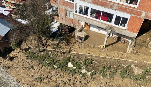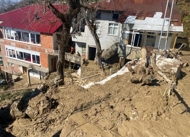 Köyde bir su kesintisi olduğundan buradaydık. İftar için Ardeşen’e indik. Bir arkadaşımız yamacın kopup menfezlerin tıkandığını söyleyerek acil yardım istedi. Köye geldiğimizde yoldan kaya büyüklüğünde taşlar iniyordu. Yukarıdan gelen hafriyat menfezi tıkayınca toprak ve çamur evlere ulaştı. Evleri de şu anda boşalttık. Toplam 16 evi boşalttık. Şu anda temizleme çalışması yapıyoruz.