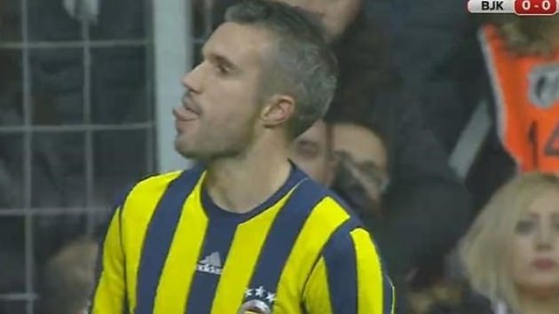 Karşılaşmanın 28.dakikasında Fenerbahçe savunmasının attığı uzun topa yetişemeyen van Persie pozisyonun dönüşünde Beşiktaş tribünlerine dönerek dil çıkardı.