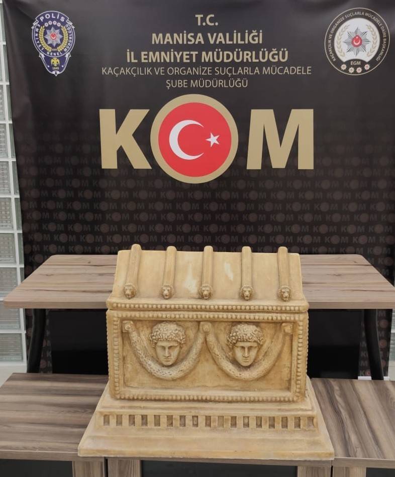 Manisa İl Emniyet Müdürlüğü Kaçakçılık ve Organize Suçlarla Mücadele Şube Müdürlüğü Kaçakçılık Büro Amirliği tarafından düzenlenen operasyonda Roma dönemine ait olduğu belirlenen lahit ele geçirilirken 3 kişi de gözaltına alındı.