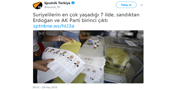 Sputnik; bu başlıkla, Suriyeli mültecilerin oy kullandığı imasında bulunarak halkı kışkırtmak istedi.