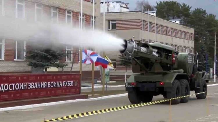 Rus ordusunun kullandığı silah ve araçların ilaçlanarak dezenfekte edildiği ifade edilirken, TU-154 tipi uçakta korona virüs tatbikatı yapıldı.