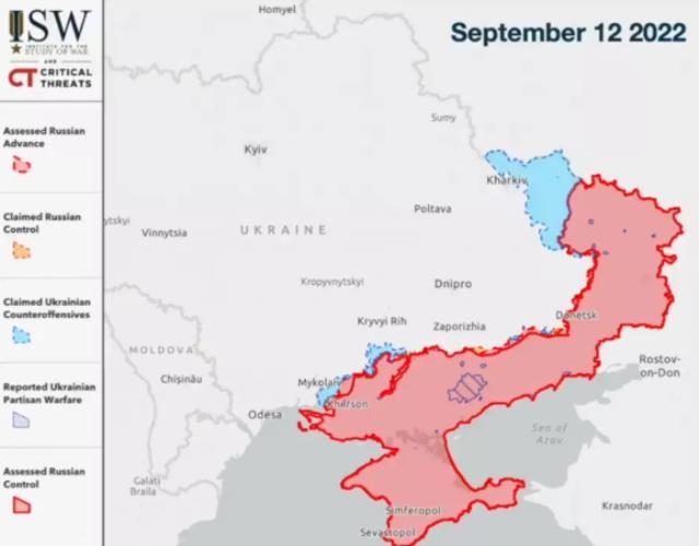 Son 12 gün içinde, kuzeydoğudaki Ukrayna birlikleri, Harkov bölgesinde 300'den fazla yerleşim yerini kurtararak ve Rus birliklerini kaçmaya zorlayarak bir karşı saldırı başlattı. Geri kazanılan alan Rusya sınırına kadar uzanıyor.