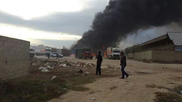 İnternette paylaşılan fotoğraflarda tırların bombalayla havaya uçtuğu görülürken bölgedeki kaynaklardan gelen bilgilere göre saldırıda 3 kişi hayatını kaybetti.