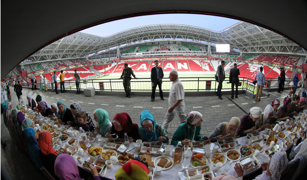 Tataristan'ın başkentindeki Kazan Arena stadyumunda Rusya'nın en büyük iftar yemeği düzenlendi.