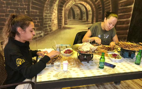 Antalya'da bir restoran tarafından uzun süredir düzenlenen 'çöp şiş yeme yarışması'na ilgi her geçen gün artıyor. Kısa süre önce yarışmaya katılan Ceren Yılmaz (21), 315 çöp şiş yiyerek rekor kırmıştı. Son rekorun sahibi Yılmaz, dün Rus asıllı Katarina Pekoğlu ile yarıştı. Bir süre önce Türkiye'de evlenen Pekoğlu, Türk vatandaşı oldu. Bir süreliğine memleketine giden Pekoğlu, yarışmaya katılmak için Antalya'ya geldi.