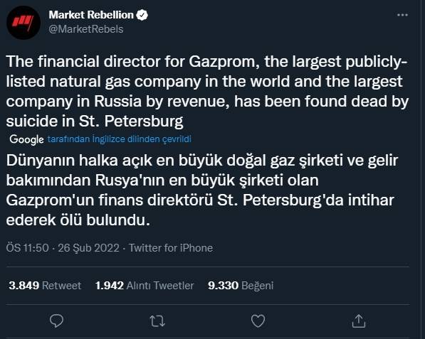 Rusya'nın en büyük petrol şirketi yöneticisi intihar etti