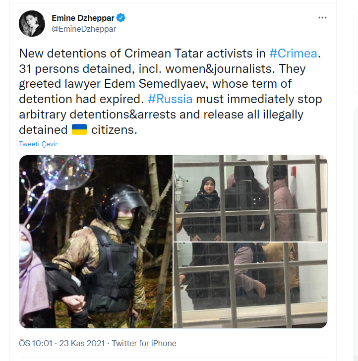 Rusya’nın Kırım Tatar Türklerine yönelik zulmü devam ediyor. Ukrayna Dışişleri Bakan Yardımcısı Emine Ceppar, Rusya’nın 31 Kırım Tatar Türkü’nü gözaltına aldığını duyurdu.