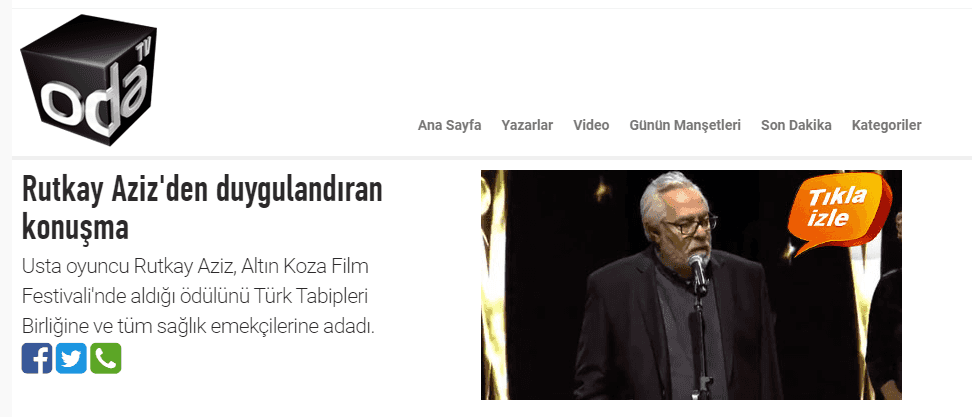 Odatv’nin TTB'ye arka çıktığı haberi, ‘Rutkay Aziz terör sevicilerini övdü, Oda TV’ciler duygulandı’ şeklinde yorumlandı.