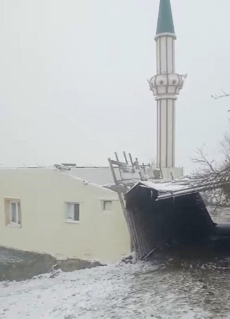 Çankırı’nın Çerkeş ilçesine bağlı bir köyde şiddetli rüzgar sebebiyle caminin çatısını uçurdu.