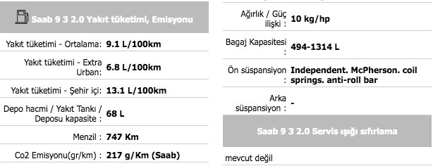 Yerli otomobilin 27 Aralık’ta tanıtımının yapılacağının açıklanmasından sonra Saab 9-3 teknik özellikler merak konusu oldu. Saab 9-3 modeline ait yakıt tüketimi, motor, kapı, beygir, tip, koltuk, üretim yılı ve diğer tüm özellikleri bu sayfada bulabilirsiniz.