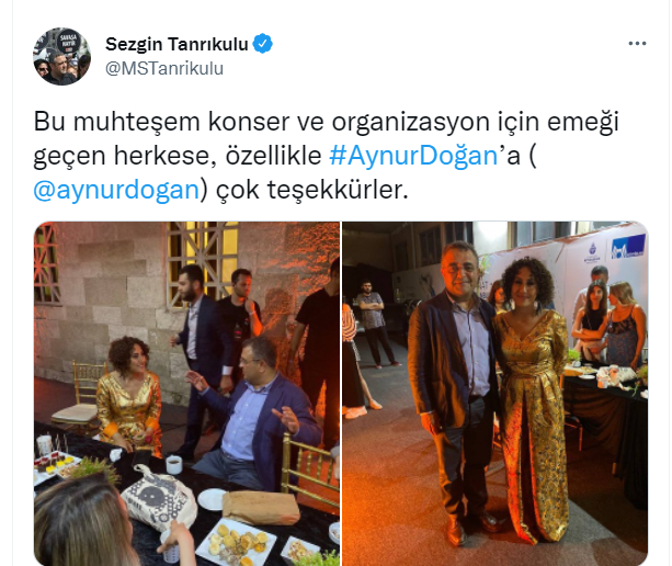 Kuliste çektirdiği fotoğraf karelerini Twitter hesabından paylaşan Sezgin Tanrıkulu, "Bu muhteşem konser ve organizasyon için emeği geçen herkese, özellikle Aynur Doğan'a çok teşekkürler." dedi.