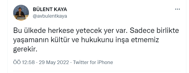 Saadet Partisi Genel Başkan Yardımcısı Bülent Kaya da terör yandaşı Doğan'ı savunarak, "Bu ülkede herkese yetecek yer var. Sadece birlikte yaşamanın kültür ve hukukunu inşa etmemiz gerekir." ifadelerini kullandı.