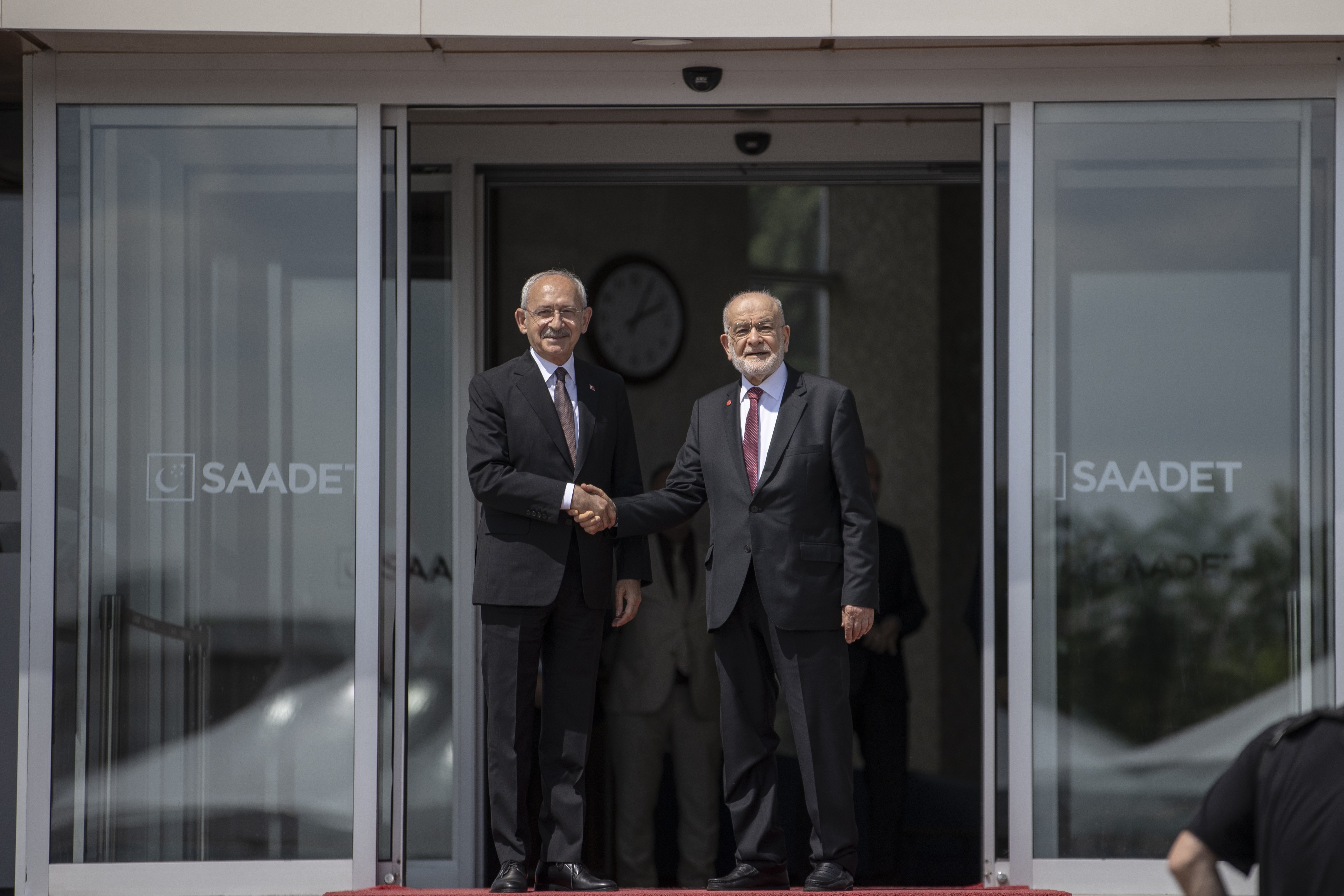 Karamollaoğlu, "Liderler Buluşması"na ayrı ayrı gelen CHP Genel Başkanı Kemal Kılıçdaroğlu, İYİ Parti Genel Başkanı Meral Akşener, Demokrat Parti Genel Başkanı Gültekin Uysal, DEVA Partisi Genel Başkanı Ali Babacan ve Gelecek Partisi Genel Başkanı Ahmet Davutoğlu'nu Saadet Partisi Genel Merkezi'nin girişinde karşılayarak kameralara poz verdi.