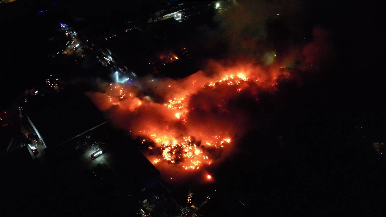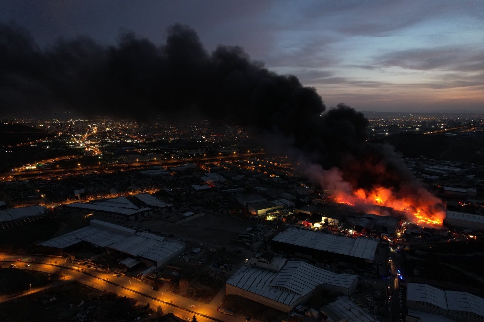 Atık maddelerin alev almasıyla başlayan yangın, kısa sürede büyüyerek çevredeki diğer fabrikalara sıçradı. Devasa alevlerin neden olduğu yoğun dumanlar çevreyi kaplarken yangın alanı dron ile görüntülendi.