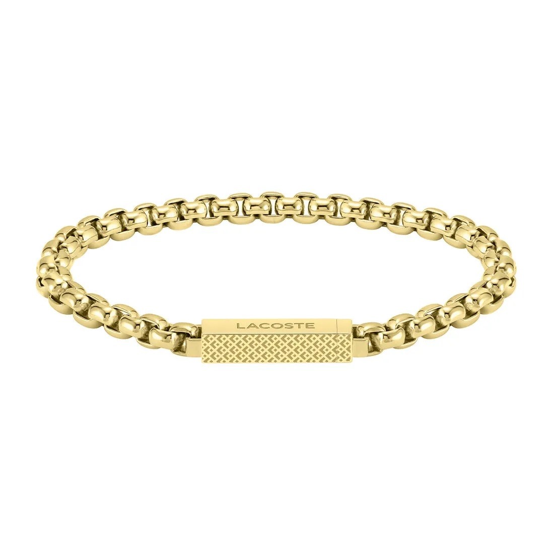 İkonik tarzıyla dikkat çeken Lacoste erkek bileklik modeli, altın rengi dinamik tasarımıyla öne çıkıyor. Lacoste’un sportif tasarım anlayışını, şıklıkla buluşturan bileklik, tarzınıza özgün bir dokunuş kazandırıyor. Ürün kodu: LACJ2040124