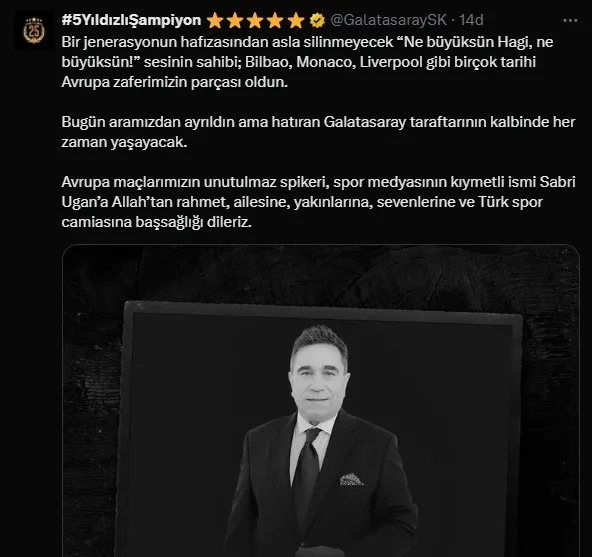 Galatasaray, Fenerbahçe ve Beşiktaş kulüpleri ile futbol camiasından birçok isim, Ugan'ın vefatı sebebiyle başsağlığı mesajı paylaştı.