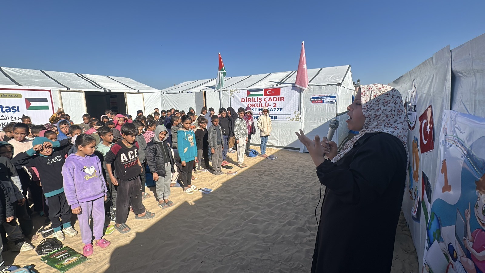 Dernekten yapılan açıklamada; ‘‘İsrail’in soykırım gerçekleştirdiği Gazze’de olayların başladığı ilk günden itibaren düzenli olarak bölge halkına insani yardım ulaştırdık. Gazzeli çocukların eğitim sorununa katkı sağlamak için kadın kollarımızın desteğiyle 150 öğrencinin eğitim göreceği Diriliş Çadır Okulu 2’nin açılışını gerçekleştirdik. Gazzeli çocukların eğitim görebilmeleri için çalışmalarımızı sürdüreceğiz.’’ İfadeleri kullanıldı.