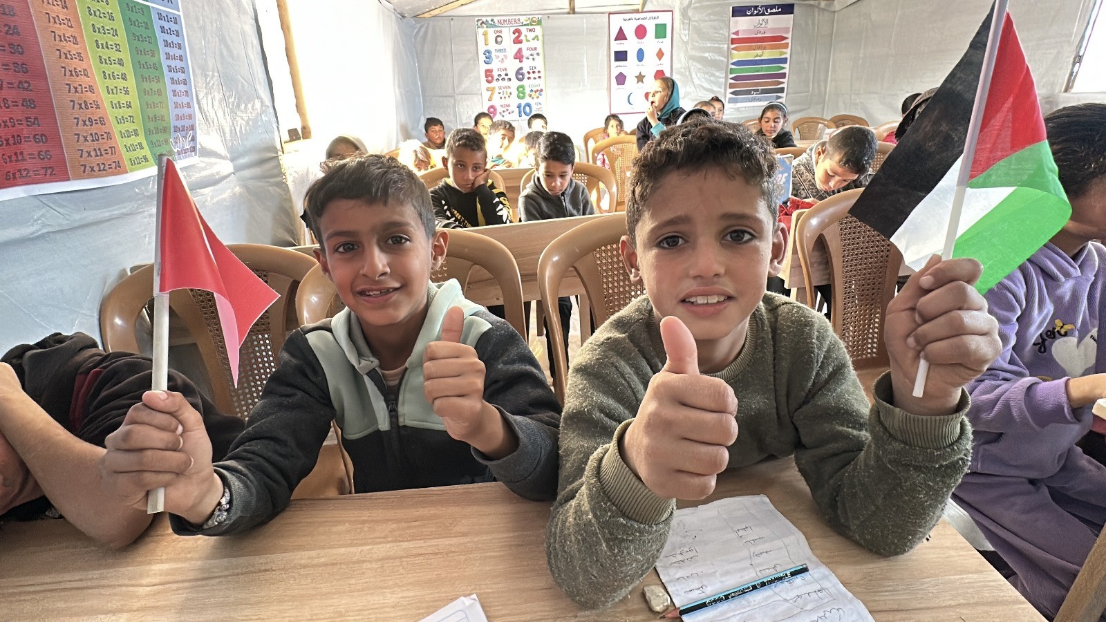 İsrail’in okulları bombaladığı, çocukları şehit ettiği Gazze’de 7 Ekim 2023 tarihinden itibaren okullarda eğitim verilemiyor. Çadırlarda yaşayan Gazzeli öğrenciler için Sadakataşı Kadın Kolları tarafından projelendirilen ikinci okul açıldı. Dernek bölgede eğitim çalışmaları yapmaya devam edecek.
