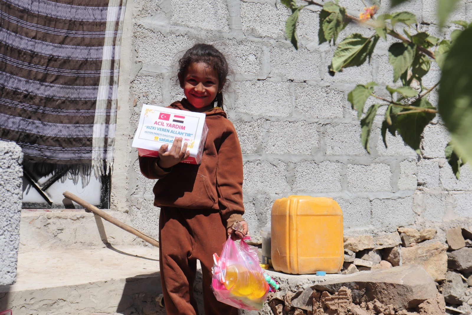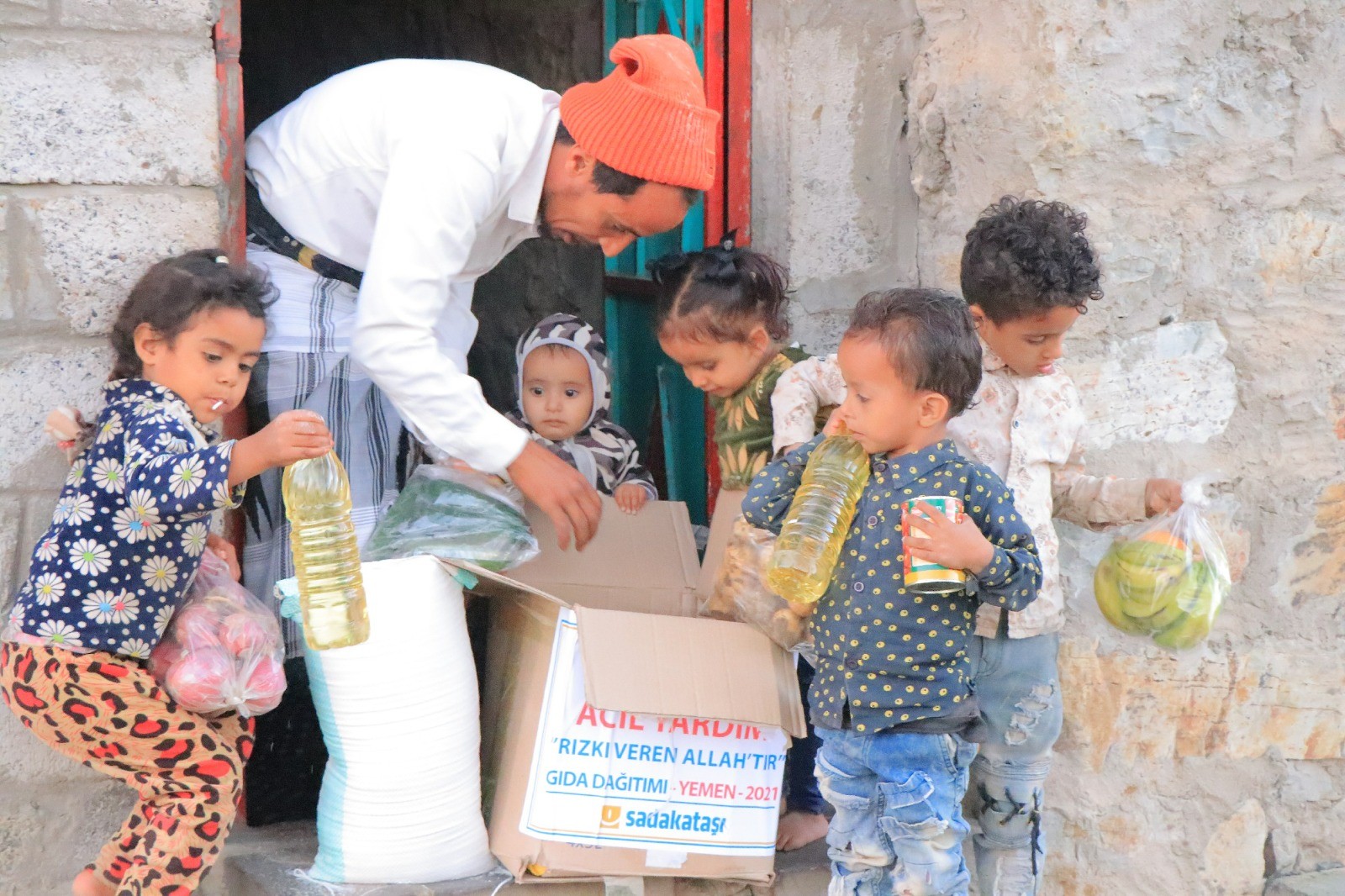 Sadakataşı Derneği, Yemen’in Taiz ve Marib bölgelerinde yaşayan 800 mülteci aileye bir aylık ihtiyaçlarını karşılayacak gıda kumanyası dağıtımı gerçekleştirdi. Her 10 dakikada bir çocuğun açlıktan öldüğü ülkede dernek tarafından içerisinde gıda ve hijyen malzemeleri bulunan 600 çocuk kolisi dağıtımı yapıldı.