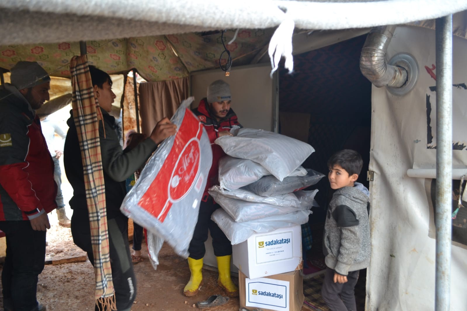 Geçtiğimiz günlerde Zerdana bölgesinde yaşanan şiddetli yağışlardan etkilenen Rahme çadır kentinde yaşayan ailelere300 adet battaniye, 280 adet yastık, 200 çocuğa ise bot ve mont dağıtımı gerçekleştirildi.Sadakataşı, kış yardımlarının devamında önümüzdeki günlerde bölgeye kışlık kıyafet, bot, battaniye, soba ve yakacak ulaştırmayı sürdürecek.