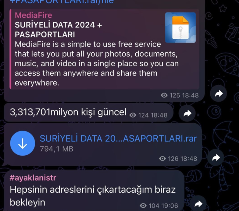 Türkiye’de yaşayan milyonlarca Suriyeliye ait pasaport bilgileri, Telegram uygulamasında ırkçı çağrıların yapıldığı gruplarda paylaşılıyor.