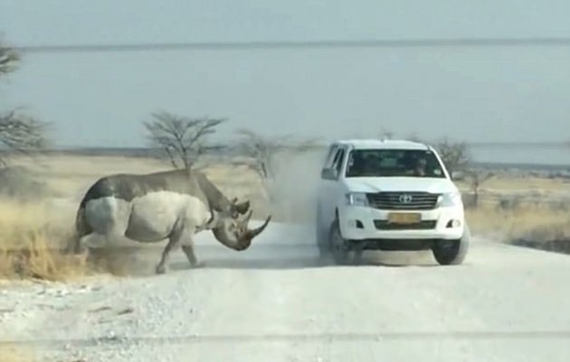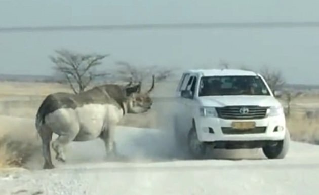 Kimsenin burnunun bile kanaması ve gergedanın cipi devirmemesi büyük bir şans olarak değerlendirildi...