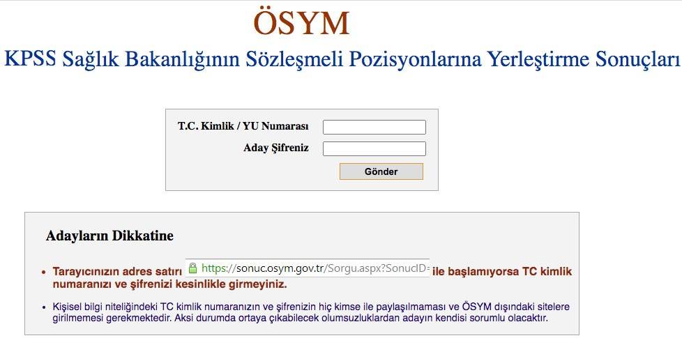 Sağlık Bakanlığı 10 bin sözleşmeli personel alımı için tercih başvurusunda bulanan adaylar, Sağlık Bakanlığı yerleştirme sonuçlarını T.C. Kimlik Numaraları ve şifreleri ile ÖSYM'nin internet sayfasından öğrenebileceklerdir. Yerleştirme bilgileri, yerleştirme sonuçları ÖSYM'nin internet sayfasından adaylara ve kamuoyuna açıklandıktan sonra ÖSYM tarafından ilgili kuruma elektronik ortamda verilecektir. Yerleştirme sonuçları ile ilgili olarak adaylara ve kurumlara postayla herhangi bir belge gönderilmeyecektir. ÖSYM KPSS 2022-5 Sağlık Bakanlığı yerleştirme sonuçları için tıklayın