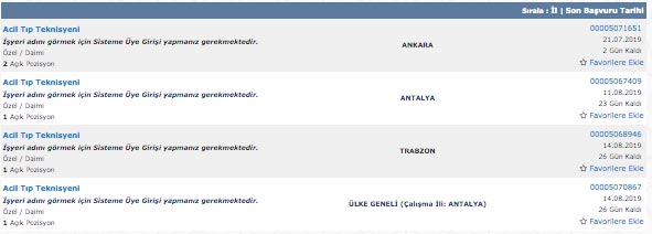 İŞKUR Acil tıp teknisyeni alım ilanı
