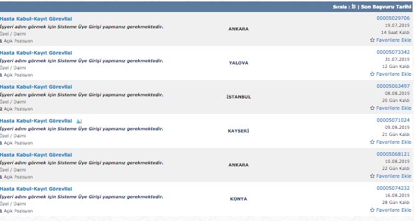 İŞKUR hasta kayıt kabul alım ilanı için tıklayınız