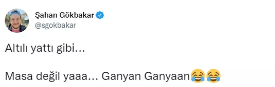 Gökbakar, "Altılı yattı gibi... Masa değil yaaa... Ganyan Ganyaan." dedi.