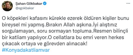 Şahan Gökbakar, Konya'daki Hayvan Bakım ve Rehabilitasyon Merkezi'nde Türkiye'yi ayağa kaldıran üzücü olayı siyasi propaganda aracına çevirdi.