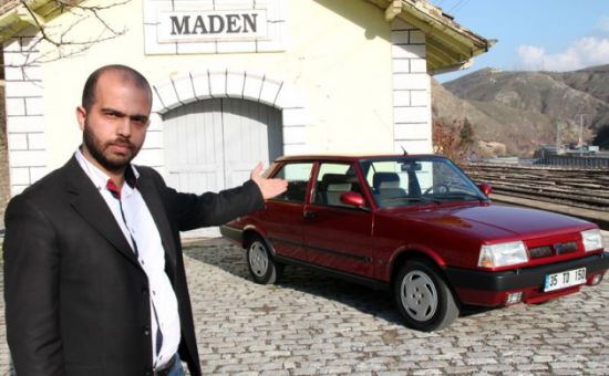 Maden ilçesinde fotoğrafçılıkla uğraşan İlker Çağıran, çocukluktan başlayan otomobil merakı nedeniyle 5 ay önce İzmir’de bir kişiden 2002 model Doğan marka otomobilin orijinalini bularak satın aldı.