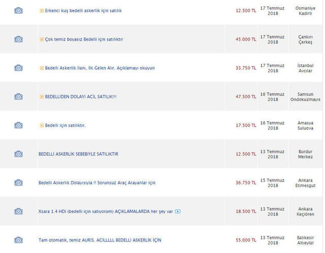 Sahibinden satılık en uygun bedelli askerlik araba ve kurbanlık fiyatları