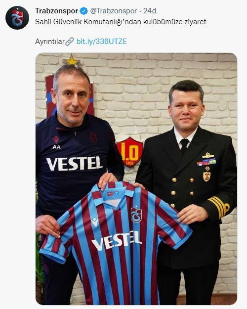 Trabzonspor’un resmi hesabından yaptığı paylaşımla Sahil Güvenlik Komutanlığı’nın kulübü ziyaret ederek başarılar dilediği belirtilerek, “Sahil Güvenlik Doğu Karadeniz Grup Komutanı Kıdemli Binbaşı Ömer Harun Özkaynak ve Sahil Güvenlik Kısım Amiri Asb. Kıdemli Başçavuş Bekir Özalp kulübümüzü ziyaret etti. Genel Sekreterimiz Ömer Sağıroğlu ve Teknik Direktörümüz Abdullah Avcı ile bir araya gelen Ömer Harun Özkaynak, takımımıza başarı dileklerini iletti. Ziyaretin ardından Teknik Direktörümüz Abdullah Avcı tarafından günün anısına Özkaynak’a formamız hediye edildi.”ifadeleri kullanıldı.