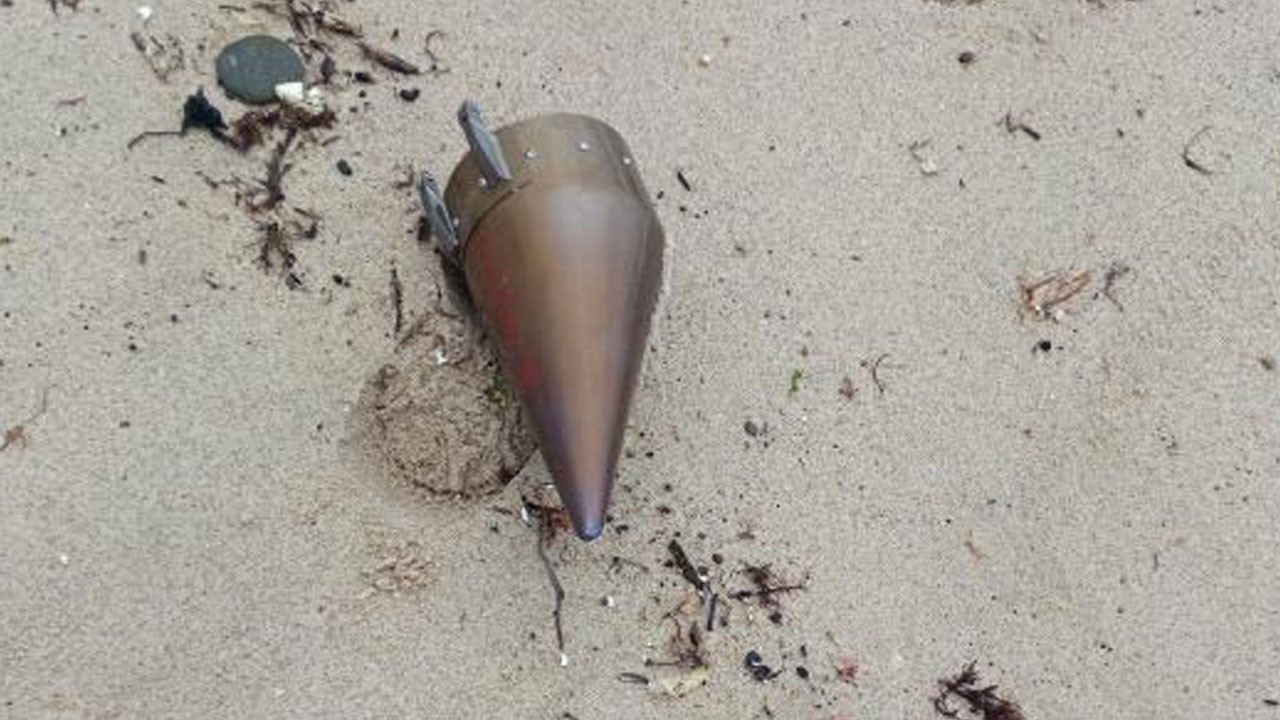 Çatalca’da denizde sürüklenen bir füze başlığı kumsala vurdu; patlayıcı olmadığı belirlenen parça jandarma ekiplerince imha edildi.
