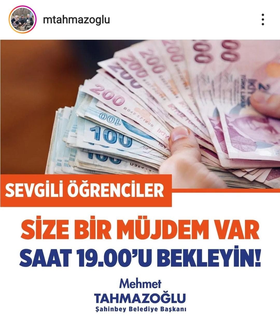 Yapmış olduğu gıda, tekstil ve nakti desteklerin yanı sıra geleneksel hale getirdiği öğrencilere ayakkabı ve bisiklet yardımlarını aralıksız sürdüren Başkan Tahmazoğlu, öğrencileri her yıl Çanakkale gezikeriylede ödüllendiriyor, yaptığı destek projeleri saymakla bitmeyecek Şahinbey belediyesi desteklerin bugün bir yenisini eklemeye hazırlanan Başkan Tahmazoğlu sosyal medya hesabından öğrencilere bir müjde var saat 19.00'u bekleyin diyerek yeni bir desteğin müjdesini verdi. Şimdi öğrenciler merakla saat 19.00'u bekliyor, paylaşımında kullandığı görselle maddi bir destek projesi olduğu tahmin edilen müjde saat 19.00'da Belediye Başkanı Mehmet Tahmazoğlu tarafından açıklanacak..