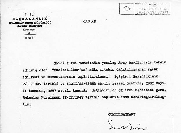Cumhuriyet arşivleri, özellikle tek parti ve darbe dönemlerinde Bakan, Başbakan ve Cumhurbaşkanlarının dini eserleri yasaklama, toplatma ve imha etme karalarıyla doludur” dedi.