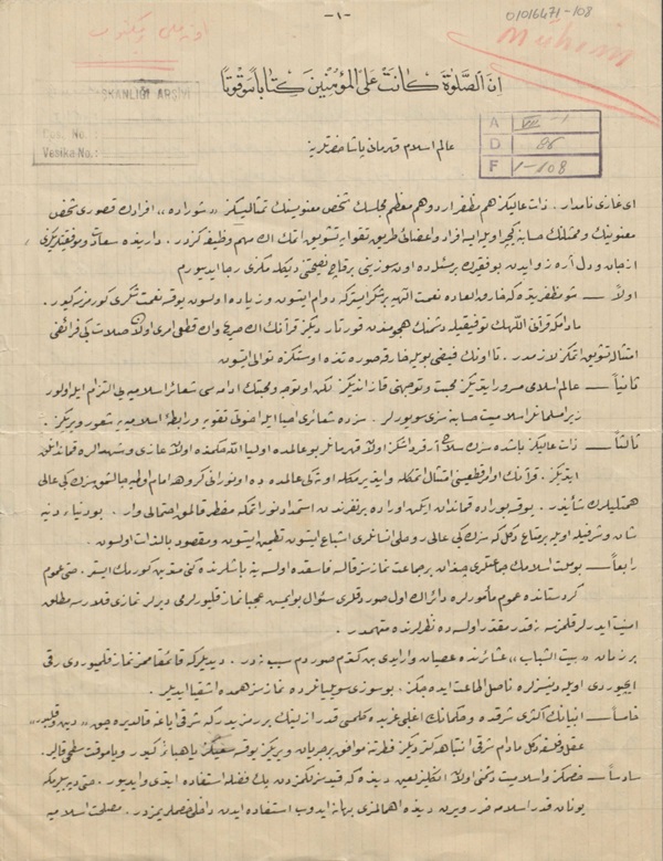 Bediüzzaman Said Nursi'nin Mustafa Kemal'e hitaben kaleme aldığı namaz beyannamesi, Cumhurbaşkanlığındaki orijinal belgesiyle birlikte yayınlandı.
