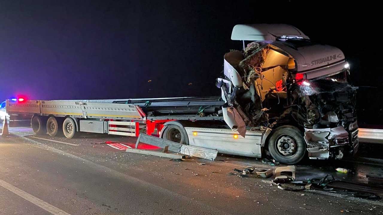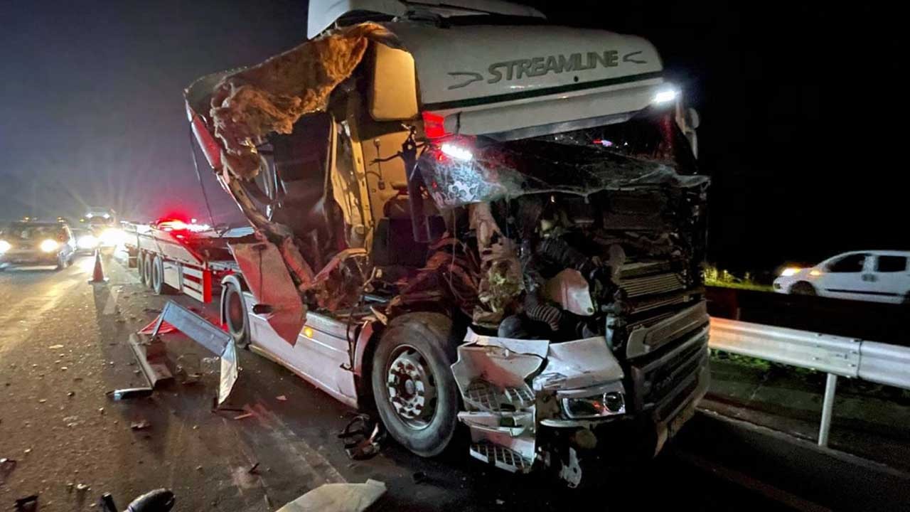 Sakarya'nın Pamukova ilçesinde kamyona çarpan demir yüklü tırın sürücüsü yaralandı.