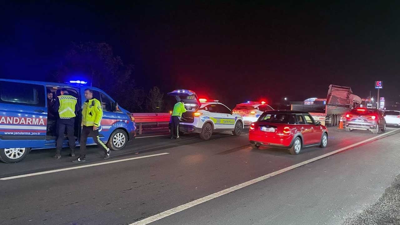 Kara yolunda bir süre tek şeritten kontrollü sağlanan trafik, tırın çekiciyle kaldırılmasının ardından normale döndü.