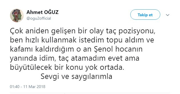 Pozisyonun içindeki Ahmet Oğuz'un maç sonu attığı tweet;