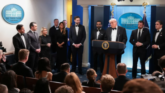 ABD Başkanı Donald Trump, Beyaz Saray Muhabirleri Derneği yemeğinde kendisine yönelik gerçekleştirilen silahlı saldırı girişiminin ardından Beyaz Saray’da bir basın toplantısı düzenledi. Saldırıyı "beklenmedik" olarak nitelendiren Trump, dış politikadaki kararlılığının sarsılmayacağı mesajını verdi.