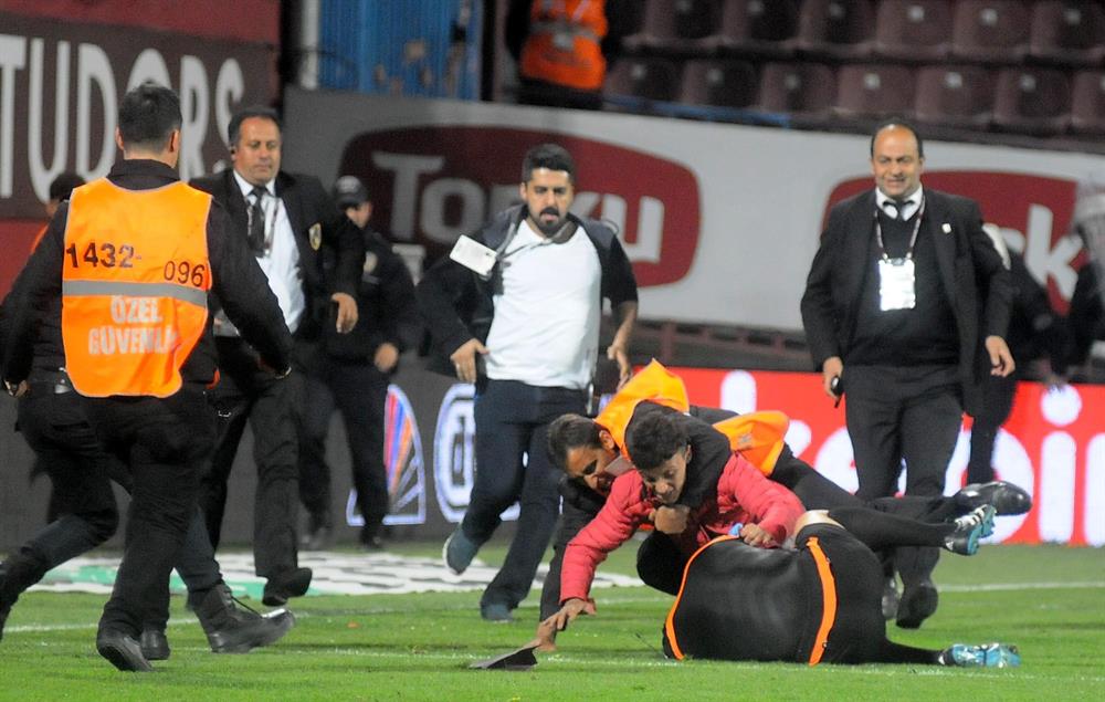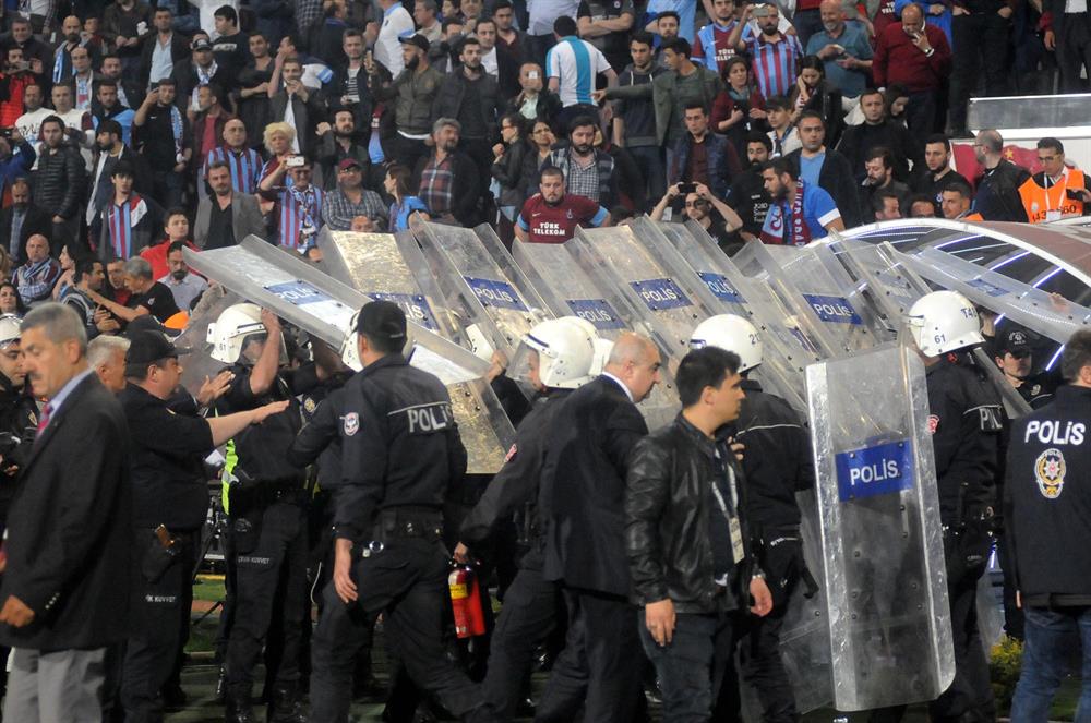 Bu arada, maçın 89'uncu dakikasında tribünden sahaya atlayarak hakeme yumruk atan 17 yaşındaki O.M gözaltına alınırken, deniz tarafı kale arkasında bulunan görevli iki polis memuru da yaralanarak hastaneye kaldırıldı. Boyun ve başına aldıkları darbeyle yaralanan polislerin ayakta tedavilerinin ardından taburcu edildiği öğrenildi.