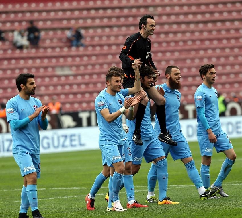 Karşılaşmanın ilk 5 dakikasını yöneten hakem Ali Şükrü Beldüz sahayı Trabzonsporlu oyuncu Salih Dursun'un omuzlarında alkışlar arasında terketti. Kariyerine Avni Aker'de nokta koyan Trabzonlu hakeme saha kenarında yardımcıları tarafından çiçek verildi. Karşılaşmayı kalan dakikadan Bülent Birincioğlu devraldı.