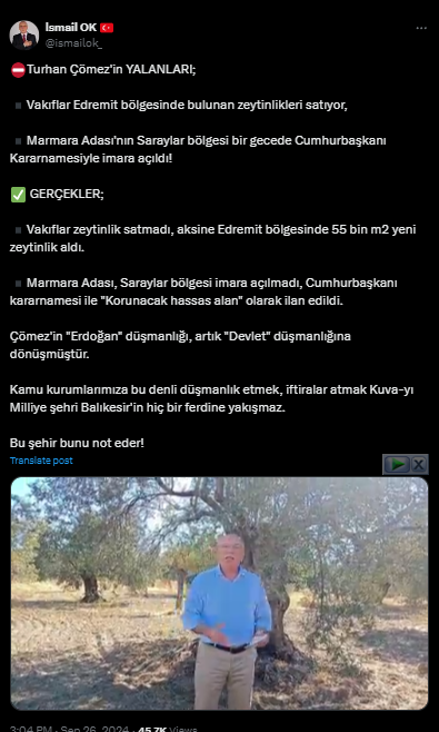 İYİ Partili Turhan Çömez'in, milleti galeyana getirmek için 'Satıldı' şeklinde iftira attığı zeytinliğe giden İsmail Ok, tüm gerçekleri anlattı.