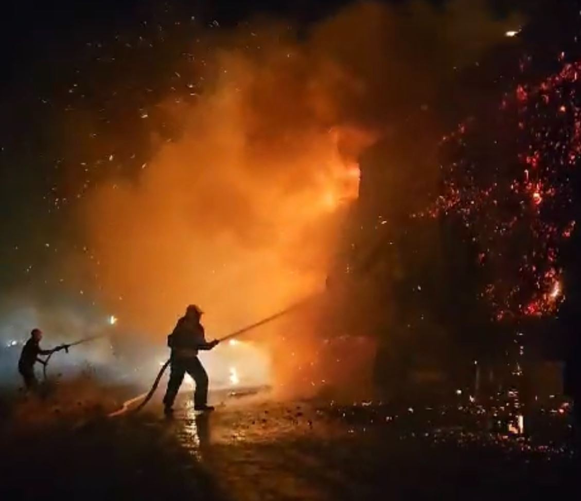 Manisa’nın Turgutlu ilçesinde seyir halindeki saman yüklü kamyon alev alev yandı.