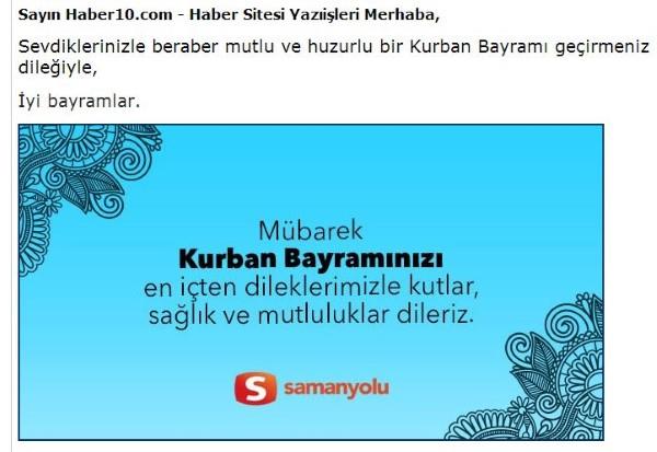 Samanyolu Yayın Grubu’nun hükümete yakınlığıyla bilinen Haber10 isimli siteye ait e-posta adresine bayram tebrik mesajı yollaması, site editörleri arasında, "teknolojinin azizliğine uğradılar herhalde" yorumlarının yapılmasına sebep oldu.