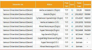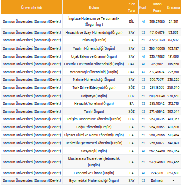 Öğrenciler, üniversite taban puanları ve kontenjan sayısı araştırıyor. Hedefledikleri üniversiteye girebilmek için yoğun şekilde sınava hazırlanan öğrenciler internette üniversitelerin taban puanlarını ve kontenjan sayılarını araştırıyor. Peki, Samsun Üniversitesi taban puanı, en düşük yüzdelik, en yüksek yüzdelik ve kontenjan sayıları kaçtır?