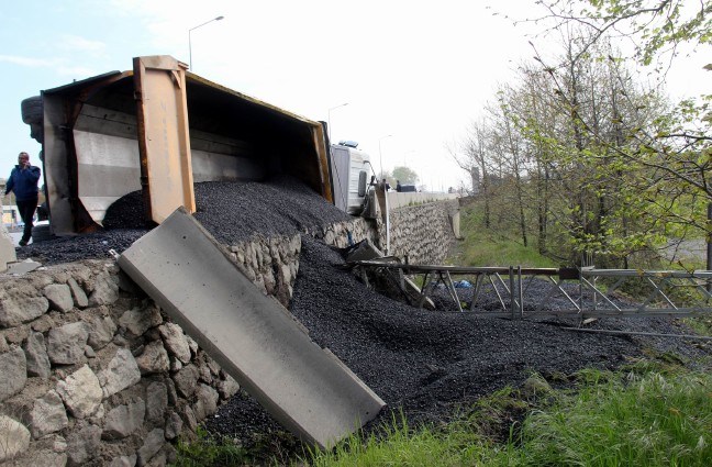 Samsun'da asfalt yüklü bir TIR'ın henüz belirlenemeyen bir nedenle devrilmesi sonucu meydana gele kazada 2 kişi yaralandı. Kazada beton bariyer ve elektrik direği yıkıldı.